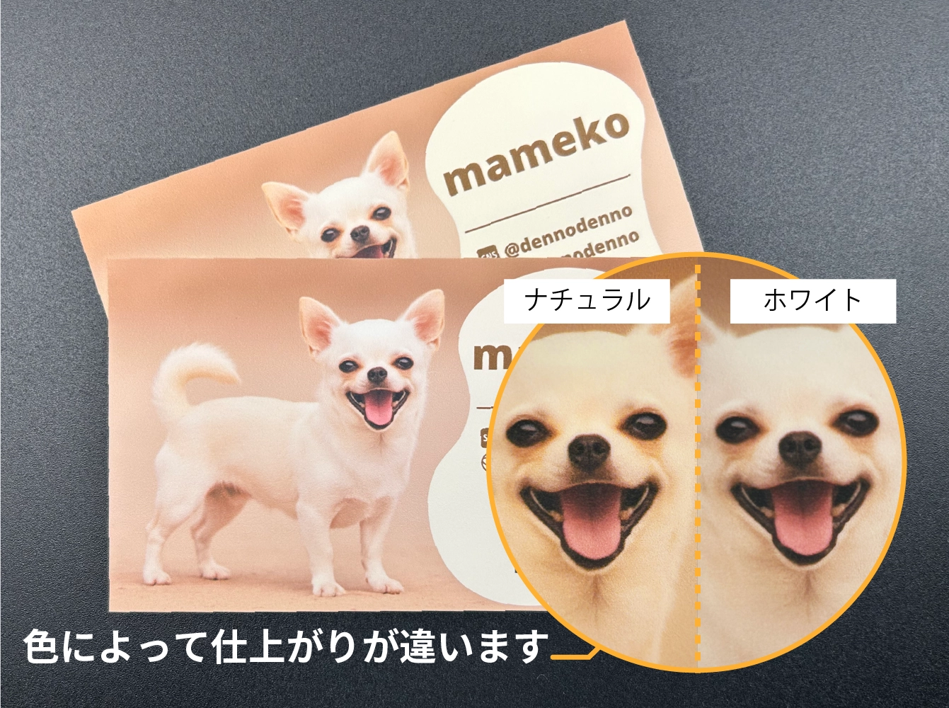 ペット名刺は、用紙の種類によって印刷の仕上がりや見た時の印象が大きく変わります。