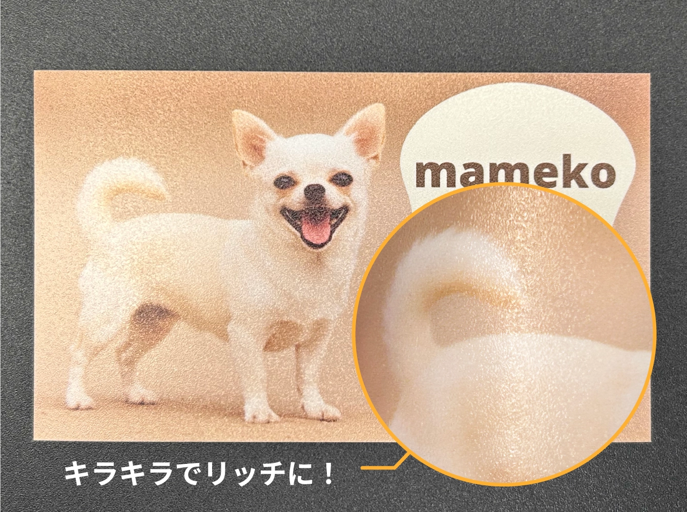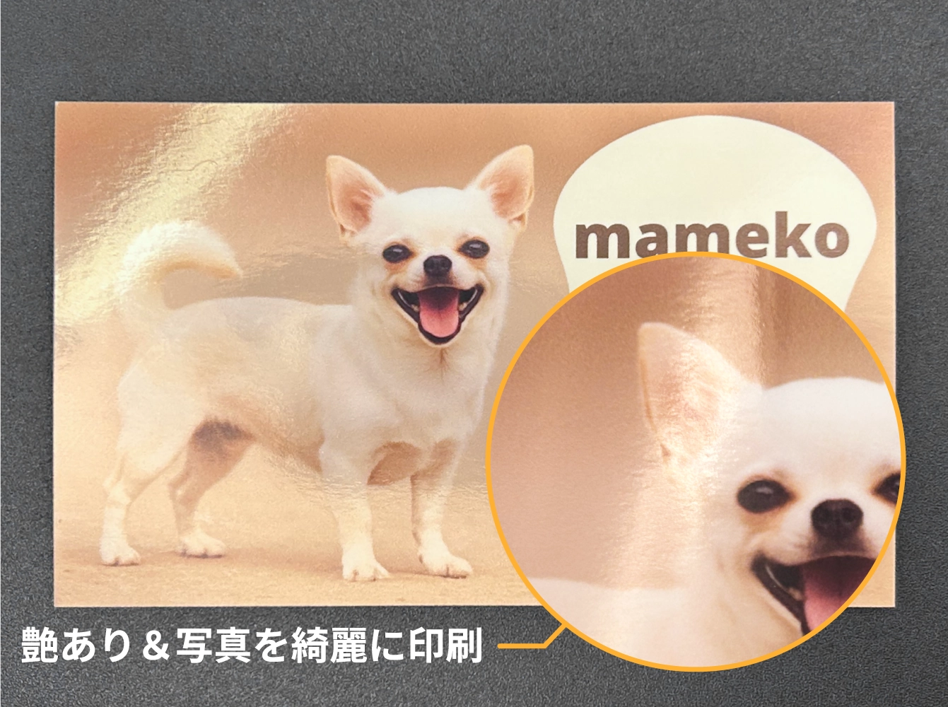 1匹でも多頭飼いでも、名刺のメインとなる、ペットの高画質な写真を用意しましょう。